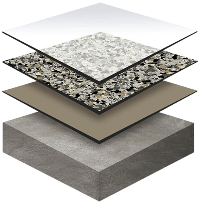 Select from decorative flakes or finishes, then we seal it all to protect against wear, chemicals, and moisture.